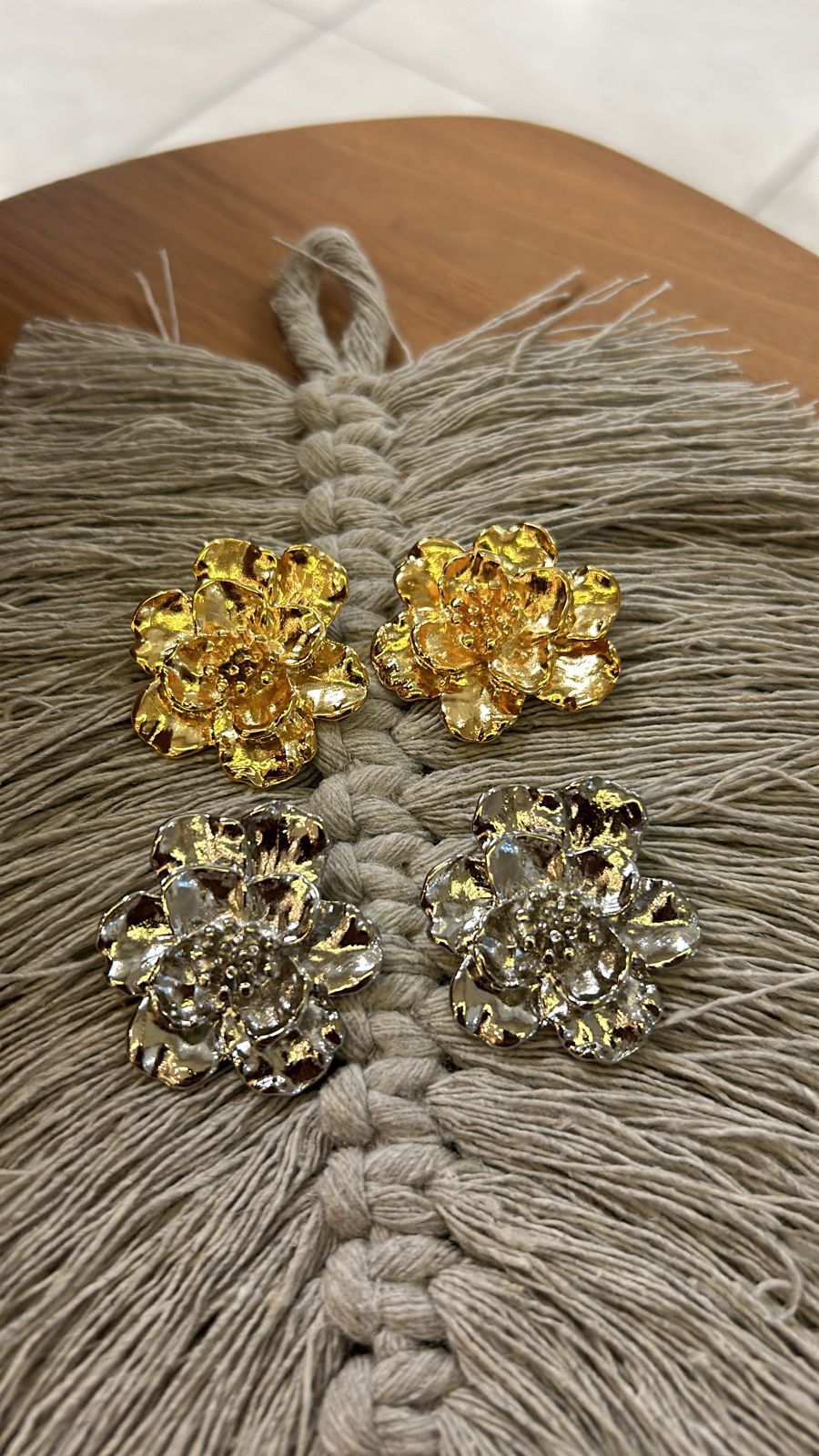 Brinco flor dourado.