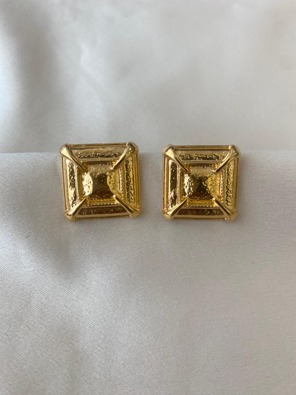 Brinco Quadrado Bordado Dourado